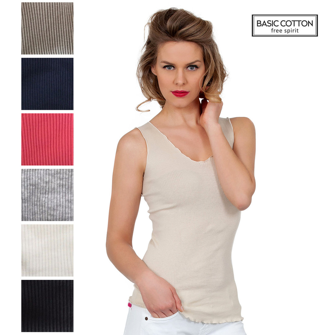 BASIC COTTON - Canotta spalla larga - Intimo donna moda - 100% Cotone costina plissè - Art.603