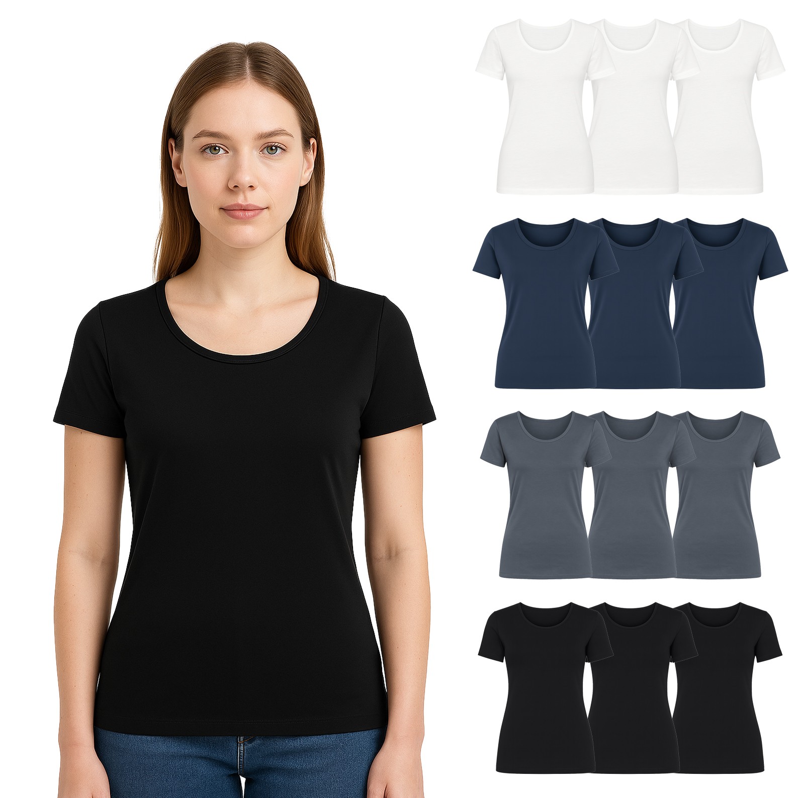 CLARABEL - Offerta 3 Pezzi - Maglia Mezza Manica Liscia - Intimo Donna - Lana e Seta - Esternabile - Made in Italy