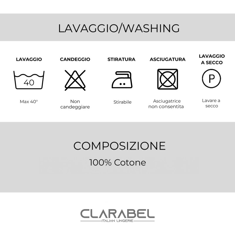 Lavaggio in lavatrice a 40°, stirabile e lavabile a secco