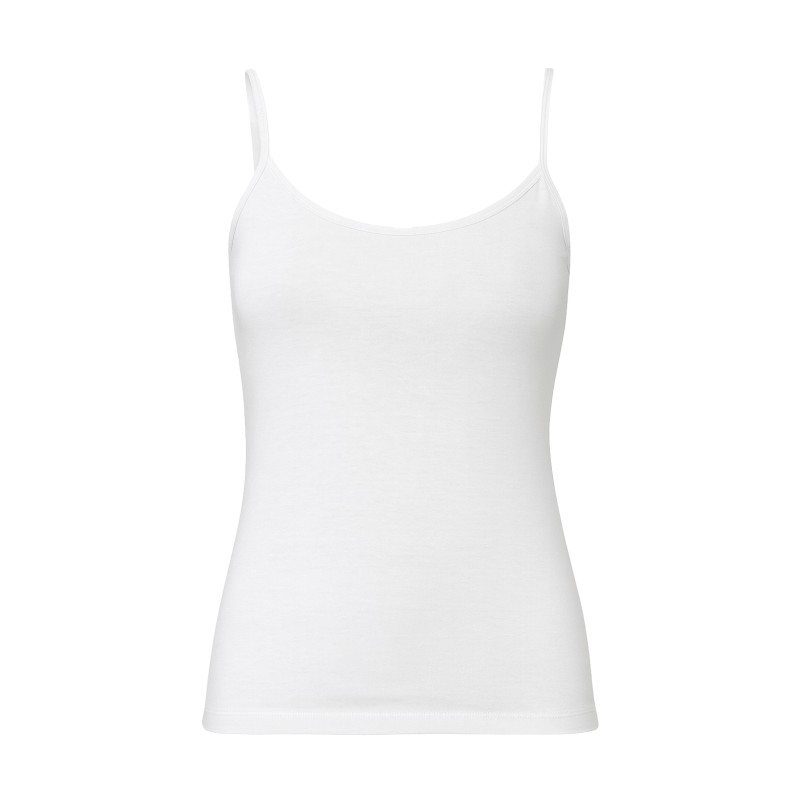 Canotta spalla stretta in cotone filo di scozia da donna, spallina in raso, bordo lucido e 100% Made in Italy. Traspirante, anallergica e senza cuciture laterali, ideale per chi soffre di irritazioni alla pelle. Cotone irrestringibile, ultra resistente e fresco. Ottimo rapporto qualità - prezzo.
