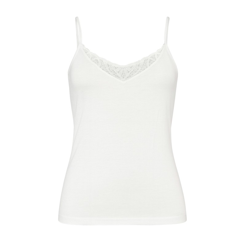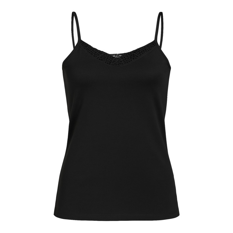 Canotta spalla stretta in cotone filo di scozia da donna con pizzo macramè sul decolletè (la trama è variabile nel tempo), spallina in raso, bordo lucido e 100% Made in Italy. Traspirante, anallergica e senza cuciture laterali, ideale per chi soffre di irritazioni alla pelle. Cotone irrestringibile, ultra resistente e fresco. Ottimo rapporto qualità - prezzo.