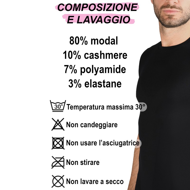 Maglietta in cashmere, tessuto che crea un ottimo calore ed è molto morbido a contatto con la pelle. Le caratteristiche principali sono quelle della manica corta e il girocollo basso. Taglio è pensato per adattarsi a diverse forme del corpo offrendo una silhouette raffinata.