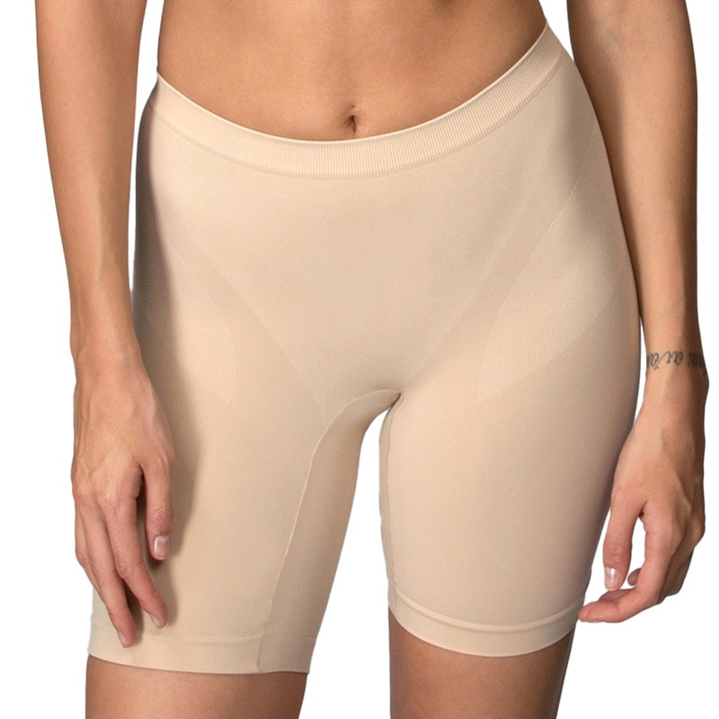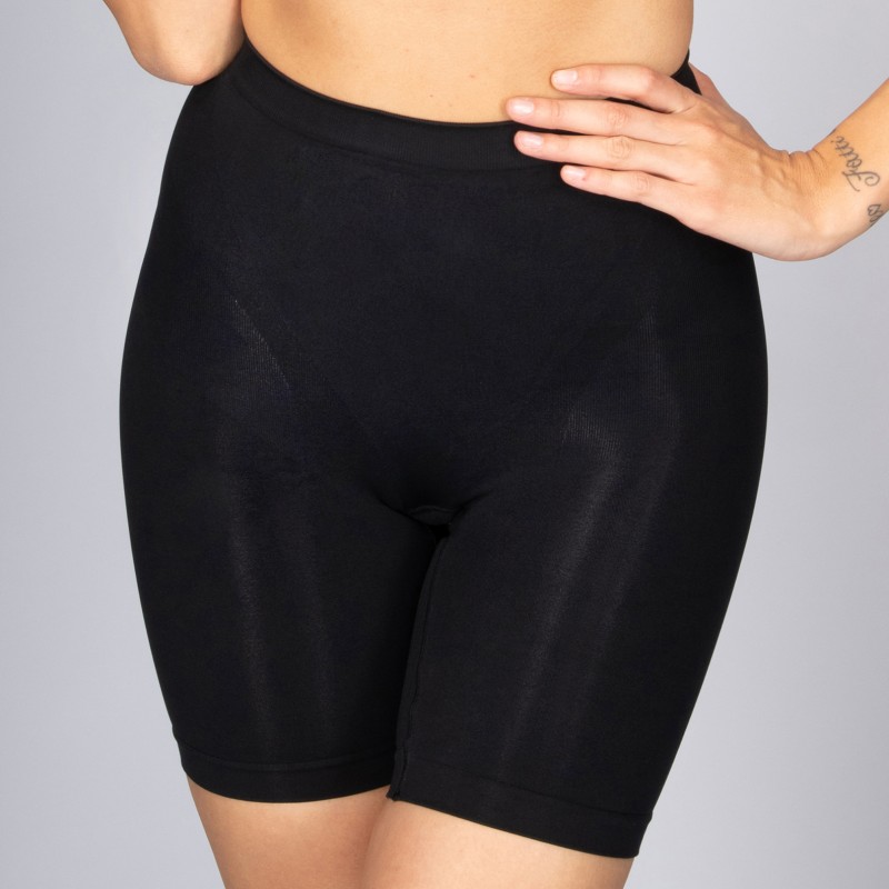 Guaina in morbida microfibra contenitiva. La particolarità è di arrivare a metà della gamba, altre caratteristiche principali sono il tassello antibatterico e il cinturino antiscivolo in silicone nella parte alta della vita. E' dotato di una vita alta e di una fascia ché da sostegno sollevando i glutei.