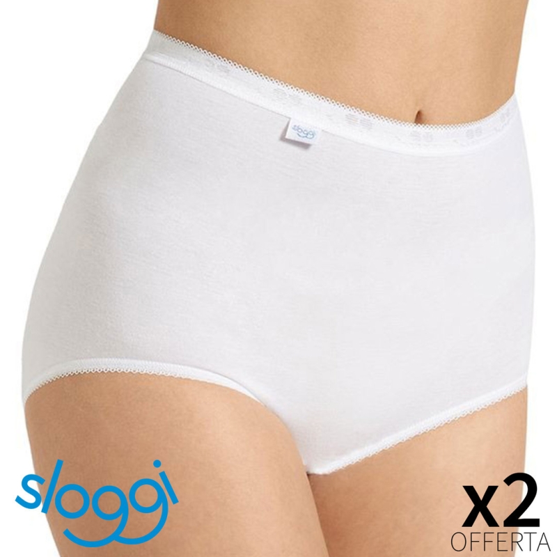 SLOGGI - Slip vita alta - Intimo donna - 2 Pezzi - Cotone elasticizzato - BASIC MAXI