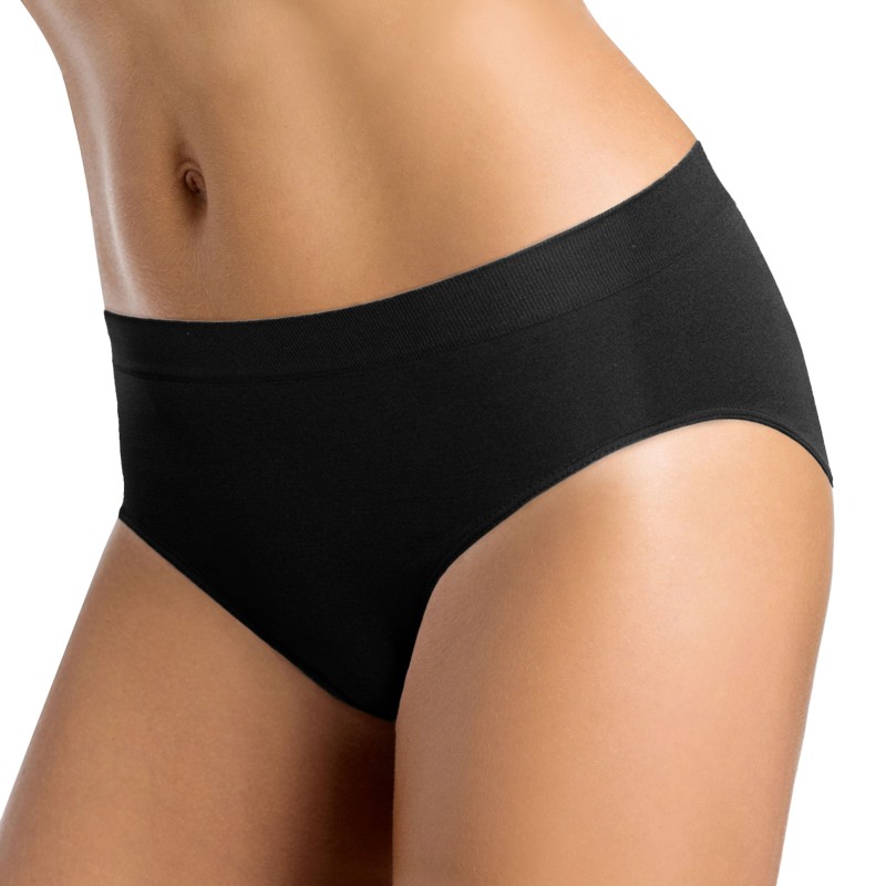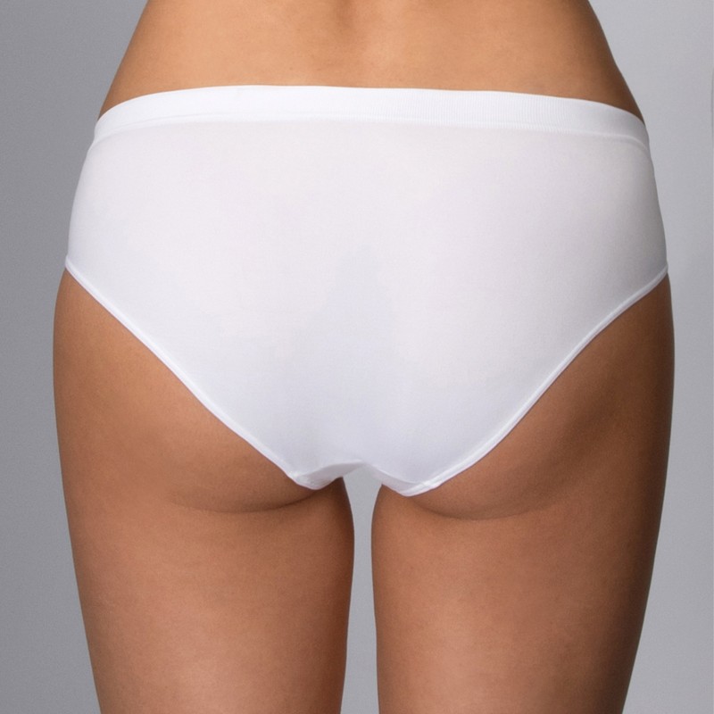Slip sgambato in microfibra. Composto da un tassello in cotone anti-batterico. Questa tipologia di slip ha un taglio laser essenziale. Con all'assenza di cuciture laterali risulta invisibile sotto gli abiti per questo si consiglia di utilizzarlo con vestiti aderenti. Questo prodotto ha la promozione di 3 slip in una confezione, le varianti di colore sono 4 o tutte a tinta unita bianco nero e skin oppure assortito quindi 3 colorazioni diverse una bianca, una nera e una skin.