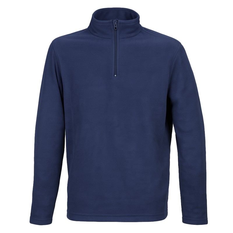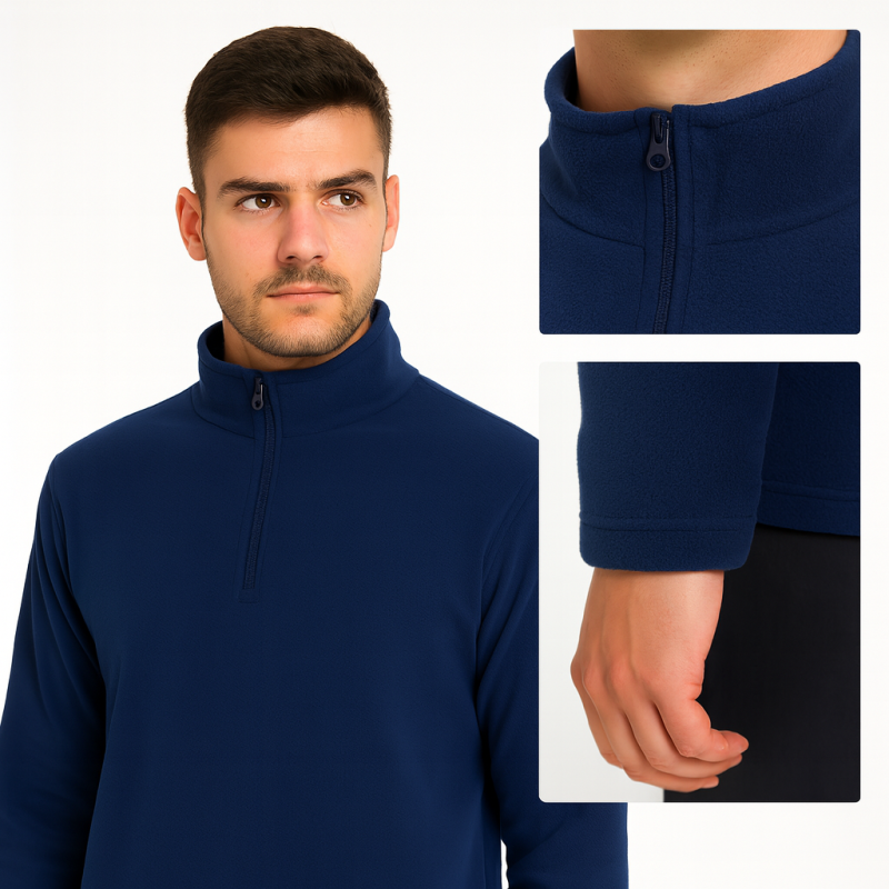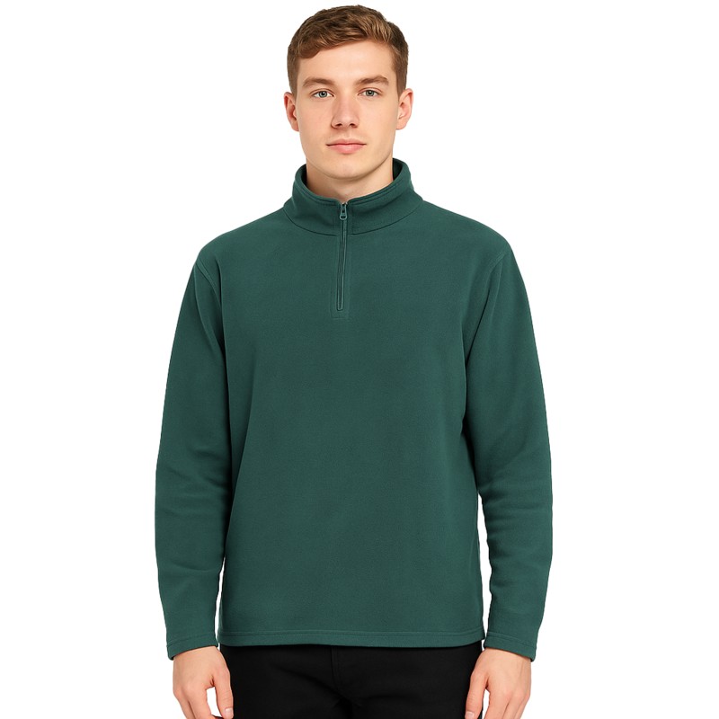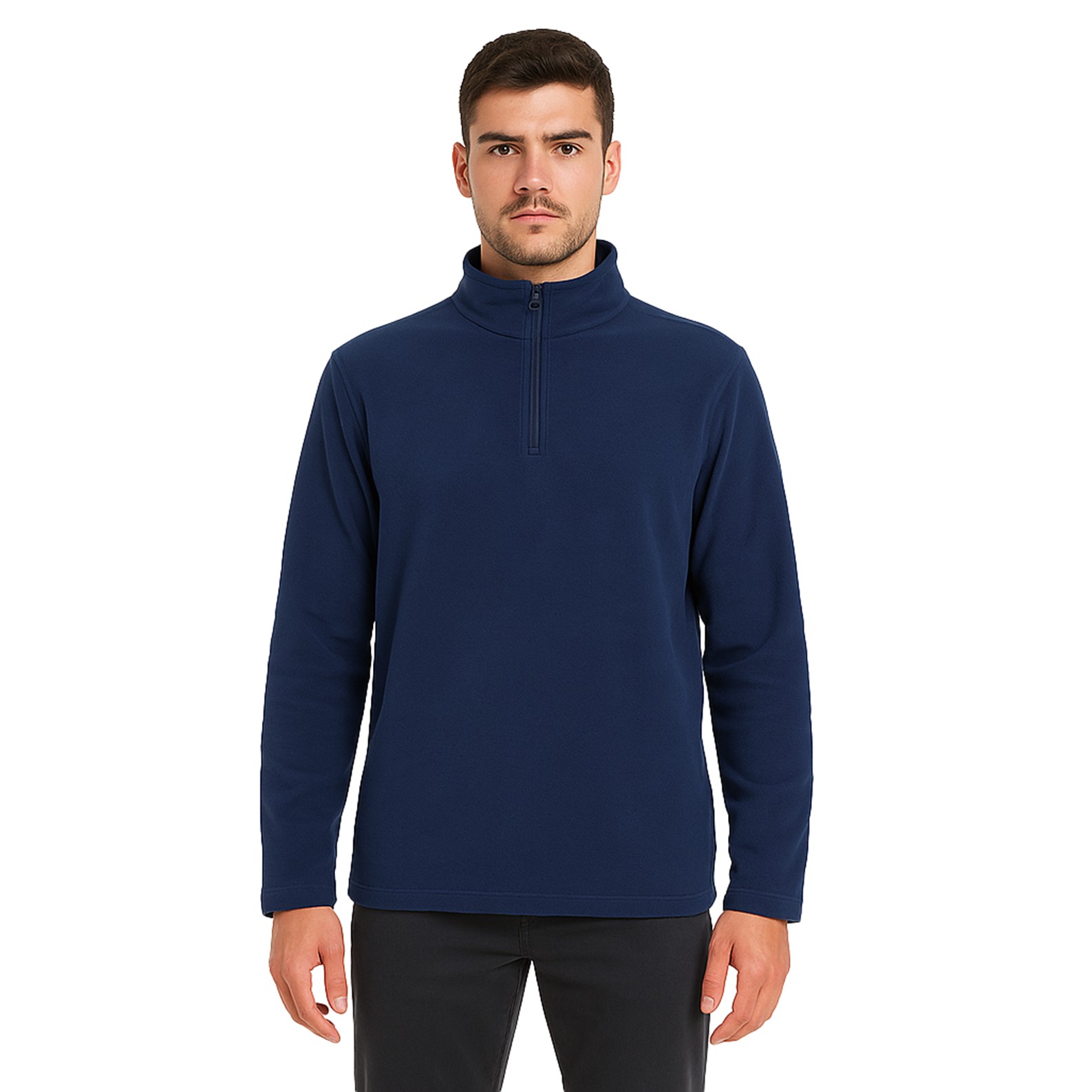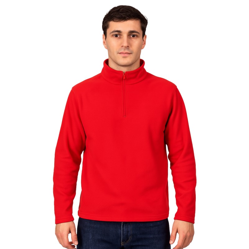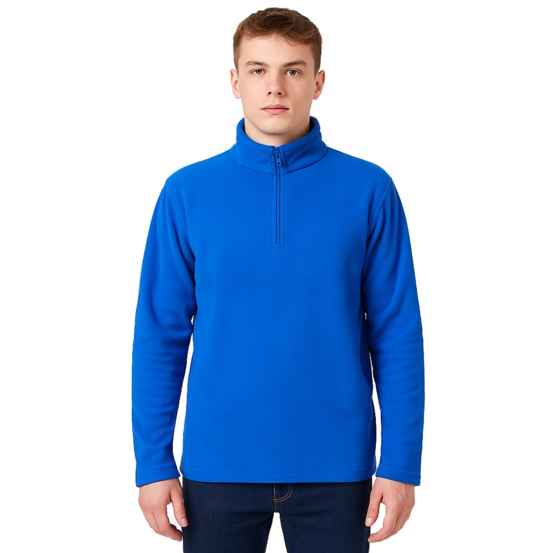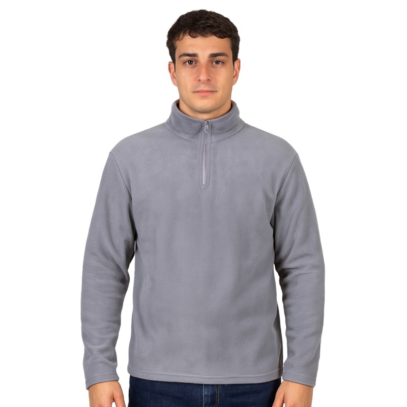 Felpa in micropile da uomo antipilling. Manica lunga, zip corta, tessuto elasticizzato ai polsi e cucito non elasticizzato al girovita. Collo alto con tessuto a protezione per il mento. Grammatura 150 grammi/mq. Adatto all'utilizzo quotidiano: lavoro, tempo libero, sport... Tinta unita.